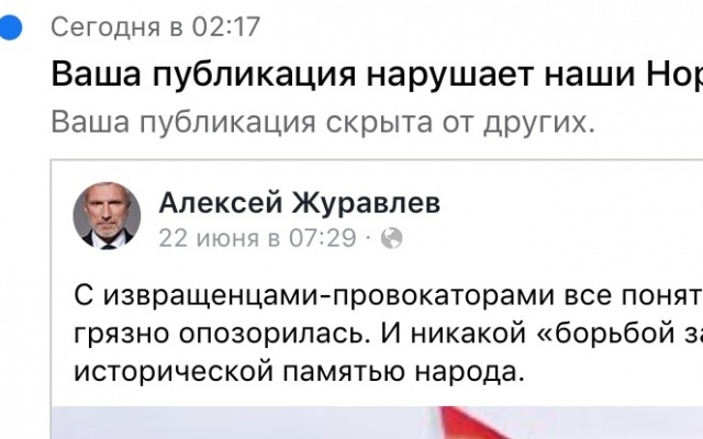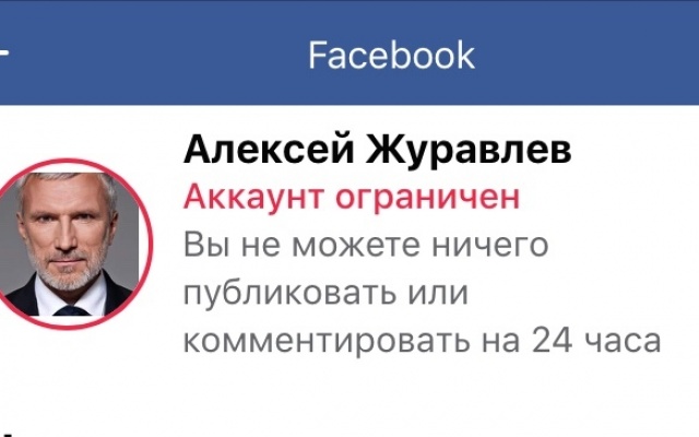 Аккаунт председателя партии "РОДИНА", депутата Госдумы Алексея Журавлева в Facebook временно заблокирован. Указанная причина - "нарушение норм сообщества".