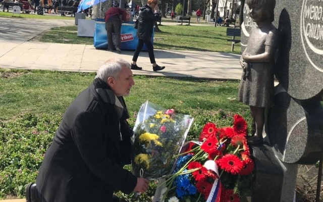 "Монумент "Зачем?" воздвигнут в память погибших работников при налете на здание Телевидения и радио Сербии. Но особенно тяжело на сердце у памятника "Мы были просто детьми" - в память погибшим сербским детям. Оба монумента стоят в белградском парке Ташмайдан", - написал лидер партии "РОДИНА" на своей странице в Facebook.