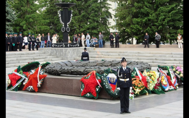 В 11.00 часов в память о погибших при выполнении служебного долга пограничниках состоялось возложение венков у Вечного огня на Аллее Славы. Были высказаны слова искренней благодарности за отвагу и мужество, за честное исполнение священного воинского долга павшим воинам-пограничникам. Они отдали самое дорогое - свою жизнь ради того, чтобы мы с вами жили в свободной стране, за её независимость и будущее. Почтив память павших при защите Отечества земляков минутой молчания, южноуральцы возложили к "Вечному огню" венки и цветы.