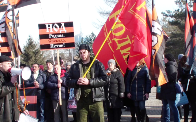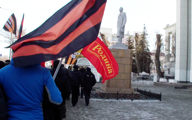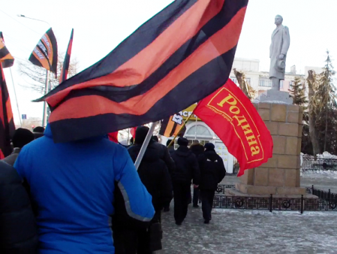 После проведенного митинга, колонна патриотов прошла вдоль по проспекту Ленина, скандируя лозунги в поддержку курса Президента России.
