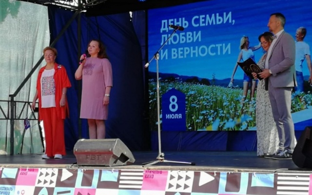 Накануне Дня семьи, любви и верности депутат Заксобрания Республики Коми, председатель реготделения партии "РОДИНА" Елена Иванова посетила праздничный концерт и приняла участие в церемонии награждения семейных пар в Кировском парке