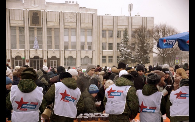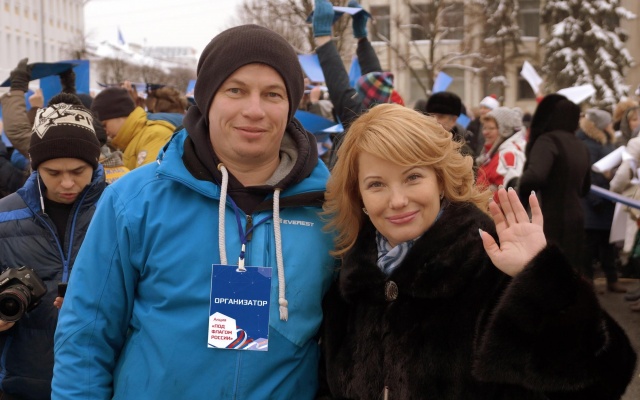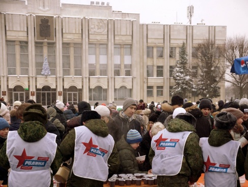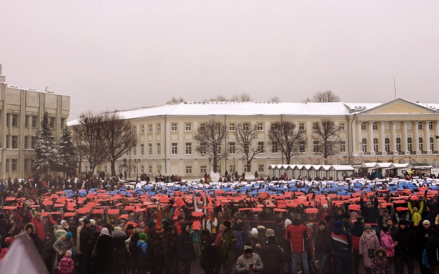 Незабываемым зрелищем стал флешмоб "Под флагом России!". На Советской площади из полотнищ трех цветов, которые держали в руках участники акции, сложили огромный триколор.