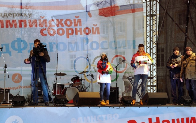 Более 5 тысяч человек в субботу 3 февраля собралось на Советской площади города Ярославля поддержать российскую олимпийскую сборную России. Из Ярославской области на Олимпиаду-2018 в Пхенчхан отправятся Максим Буров, Любовь Никитина, Станислав Никитин, Павел Кротов и Илья Буров. Они представят на зимних мировых соревнованиях фристайл. Во время акции "Под флагом России" известные ярославские заслуженные спортсмены Ярослав Рыбаков, Максим Тарасов, Илья Горохов выступили со сцены со словами поддержки в адрес российской Олимпийской сборной.
