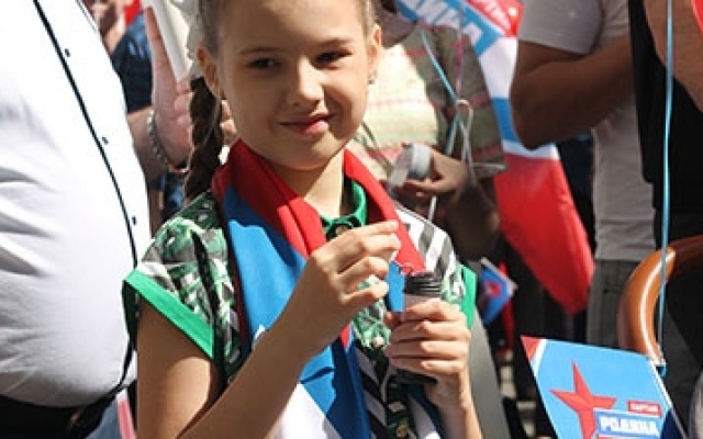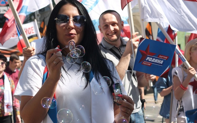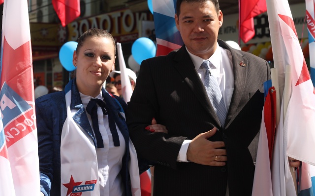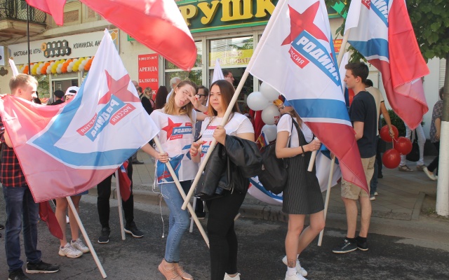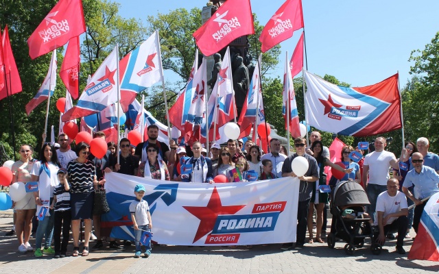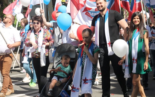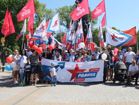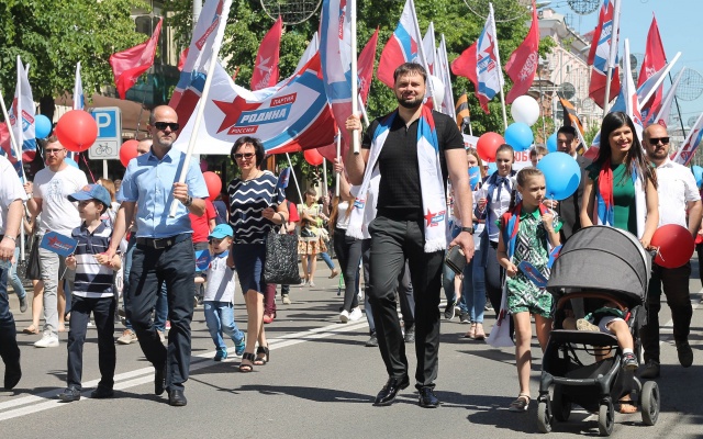 Председатель регионального отделения партии "РОДИНА" в Краснодарском крае Денис Панасенко лично возглавил партийную колонну для участия в торжественном шествии.