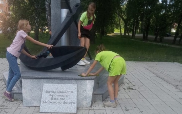 Накануне Дня памяти и скорби ребята из трудового отряда школьников привели в порядок памятник ветеранам 118 Арсенала Военно-морского флота в жилом районе Пашино.