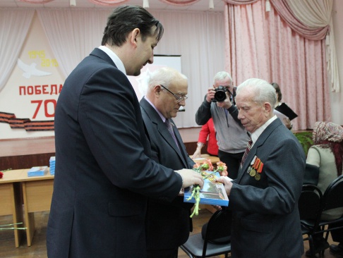 Глава города Дзержинска Валерий Чумазин и депутат Городской думы и Председатель Совета местного отделения партии "РОДИНА" Олег Чесноков вручили юбилейные медали ветеранам Великой Отечественной войны, которые приняли участие в празднике, прошедшем 1 апреля в школе №3.