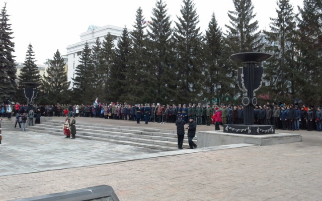 23 февраля социал-патриоты Южного Урала, наряду с ветеранами Великой Отечественной войны, боевых действий и военной службы, военнослужащими воинских частей Челябинского гарнизона, членами семей погибших защитников Отечества, жителями г. Челябинска и области, приняли участие в возложении венков к мемориалу "Вечный Огонь".