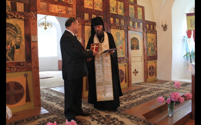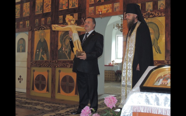 Главное событие программы пребывания московских гостей с участием актива регионального отделения ВПП "РОДИНА" состоялось в Карачевском районе - на малой родине председателя Брянского регионального отделения партии "РОДИНА" Леонида Филина. В этот день одному из древнейших православных монастырей – Бережанскому Воскресенскому мужскому монастырю и его духовной обители Воскресенской церкви – Леонид Филин передал копию Животворящего Креста Господня.