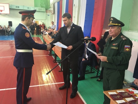 Заместитель председателя совета Самарского регионального отделения партии "РОДИНА", депутат Думы городского округа Самара Валерий Барсук вручил кадетам благодарственные письма за активную жизненную и гражданскую позицию, большой вклад и личное участие в мероприятиях патриотической направленности, пожелал им успехов и новых достижений. Учащиеся кадетских классов были также награждены памятными знаками "Куйбышев – запасная столица" и сертификатами участников областной военно-исторической Олимпиады "Калашников – автомат, Человек и Патриот".